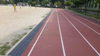 운동장 가장자리에 주로 설치되는 배수로 시설물 덮개인 스틸그레이팅은 창살 모양의 격자형 구조로 설계돼 격자 공간이 지나치게 넓으면 낙상 사고를 유발하기가 쉽다.